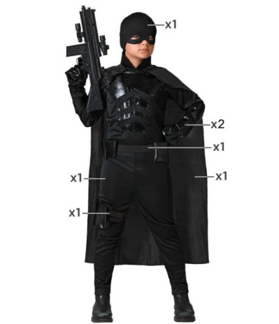 Inclui: macacão, capa, luvas, cinto, acessório para a cabeça e para a perna