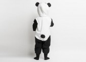 O fato original do panda o amiguinho especial do canal panda. Fofinho e quentinho, fato completo inteiro (macacão), com a cabeça forrada, com pom pom no fundo das costas. fecha à frente com fecho. Agora já te podes mascarar de panda! Não tem abertura entre pernas, mas abre do pescoço ao fundo da barriga com fecho. o cós no tornozelo é com elastico.