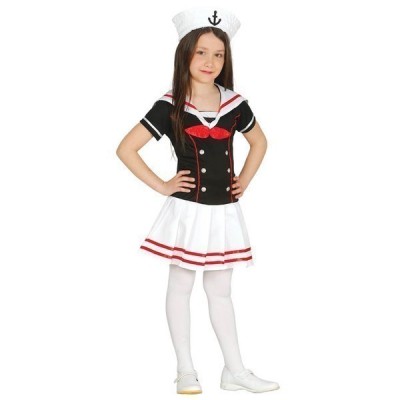 Este disfarce de marinheira consiste num vestido e numa boina.
