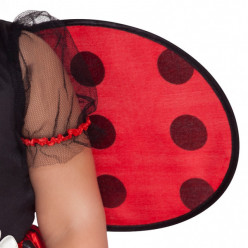 Disfarce de carnaval para bebé de pequena joaninha com saia em cetim e mangas transparentes. Com efeite de margarida.