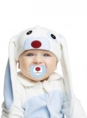 Inclui: macacão com gorro e chucha com o nariz do coelhinho