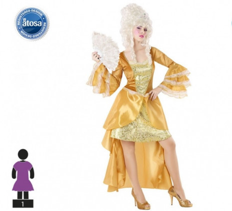 Disfarce de carnaval de adulto para mulher de cortesão dourado.