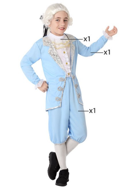 Fato de cortesão em azul para menino para brincar ou festejar o carnaval.