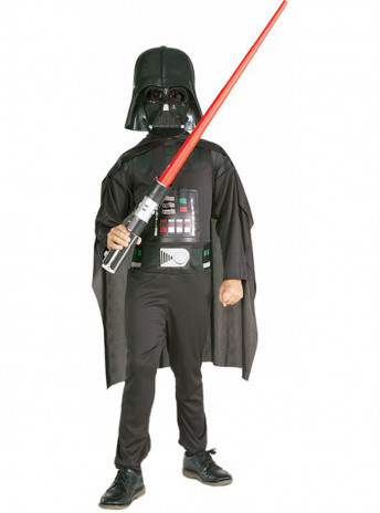 Fato de Darth Vader espada de luz lazer. Inclui fato com impressão, capa, máscara, cinto e sabre de luz. Disponível nos tamanhos 3-4 anos, 5-7 anos, 8-10 anos.