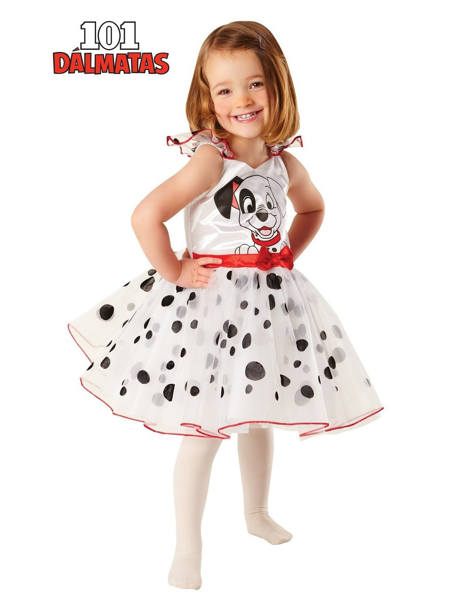 Fato de carnaval de menina 101 Dálmatas. Inclui um vestido branco com bolinhas pretas em Tutu com a imagem no peito de um bonito dálmata . Disponível nos tamanhos 1-2 anos, 3-4 anos.