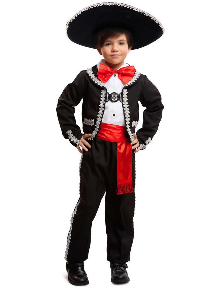 Inclui: casaco e calças pretas, laço e faixa vermelha.