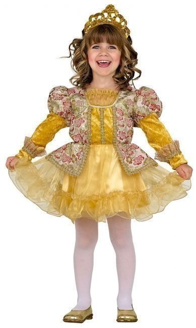 Fato de carnaval de menina Princesa das Camélias Ouro, um fato de princesa curto, para