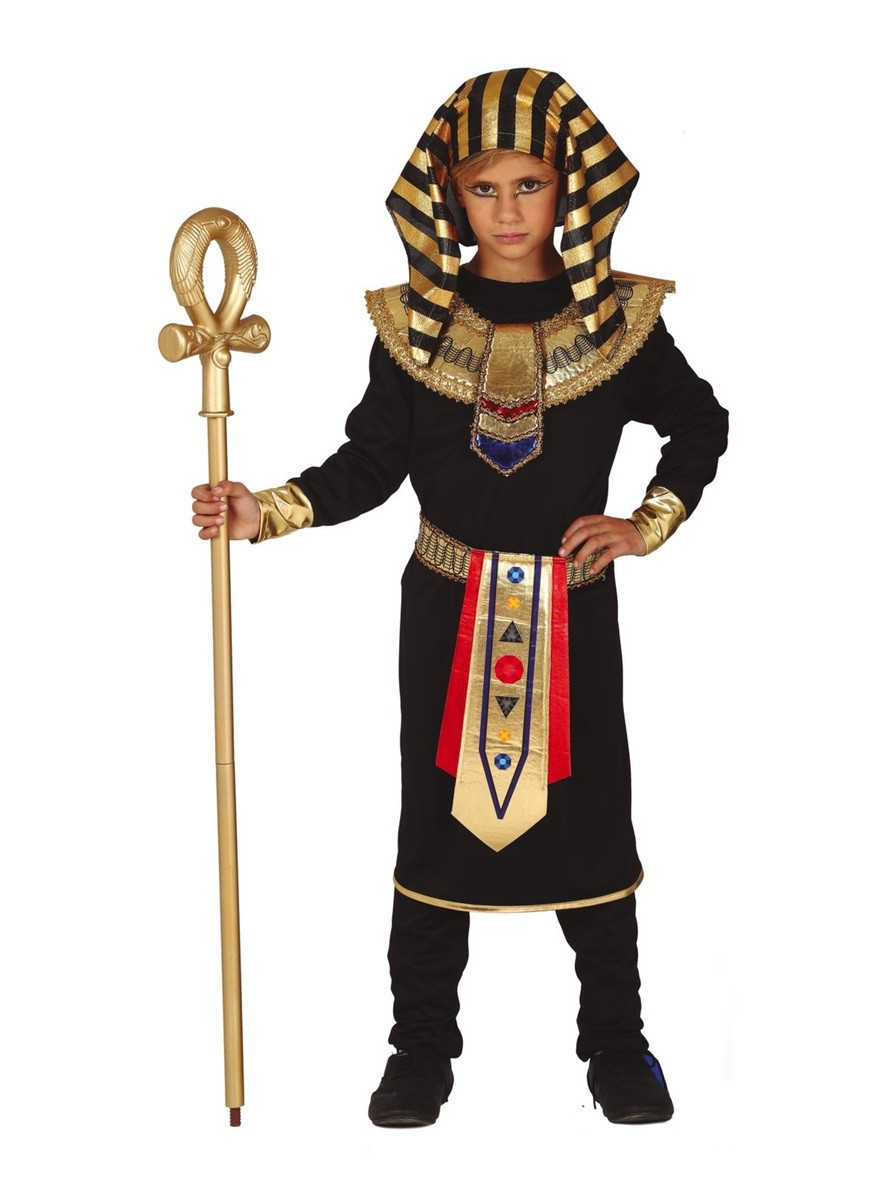 Disfarce de egípcio em tons de preto e dourado para a sua criança se divertir no carnaval.