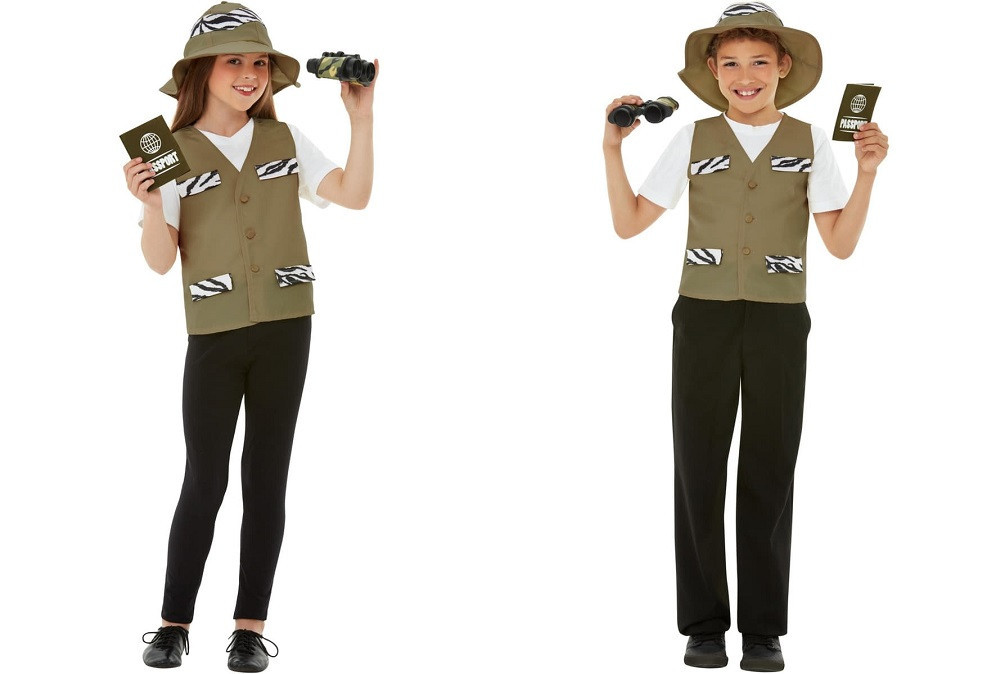 Inclui: chapéu, colete, binóculos, passaporte e autocolantes