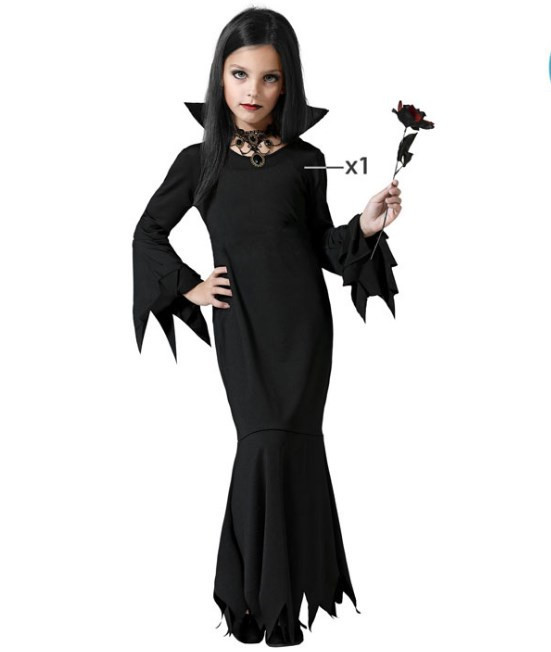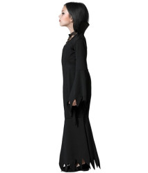 Fato de fantasma negro para menina para festejar o halloween ou o carnaval.