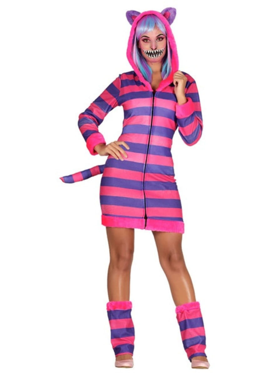 Disfarce de carnaval para mulher de gata às riscas.
