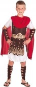 Fato completo de gladiador romano para criança composto por tunica, "armadura", capa vermelha, punhos e perneiras.