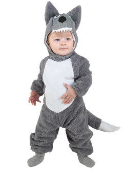 Inclui um macacão quentinho com cauda e capuz com a cabeça de lobo.