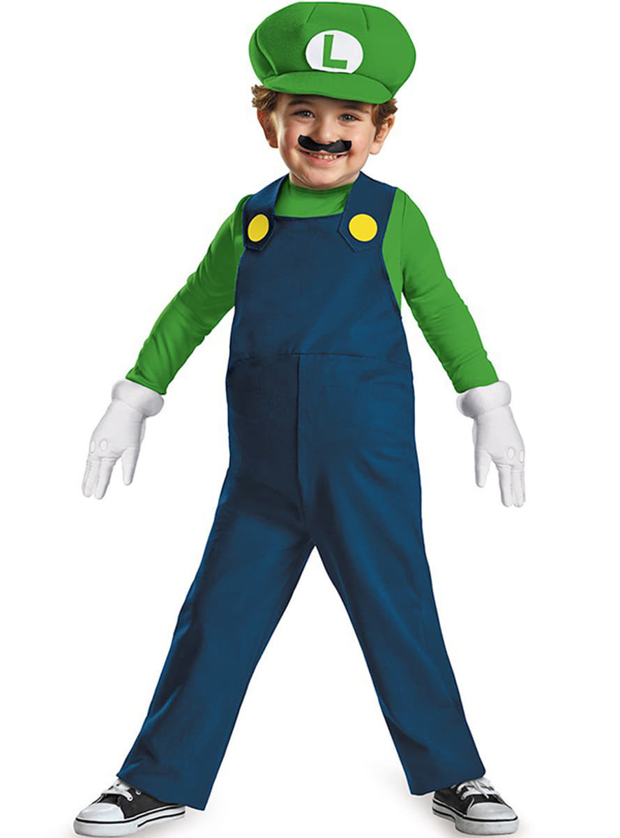 Disfarce de Carnaval de Luigi Prestígio para criança. Inclui macacão, barriga, chapéu e luvas.Fantasia disponível nos tamanhos 1-2 anos, 3-4 anos.