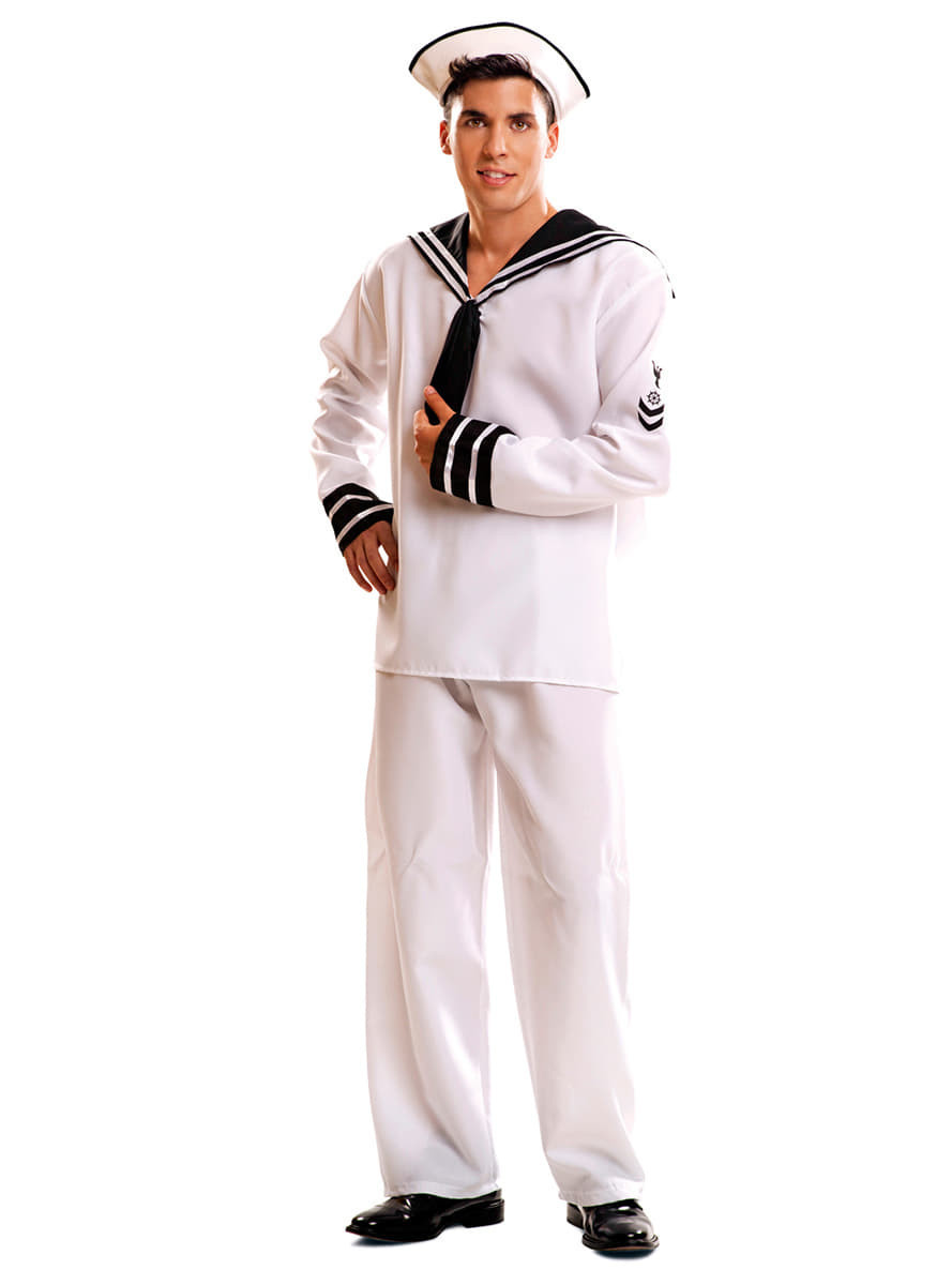 Disfarce de carnaval para adulto de marinheiro com farda branca.