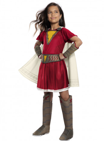 Disfarce de carnaval para criança da personagem Mary do filme Shazam.