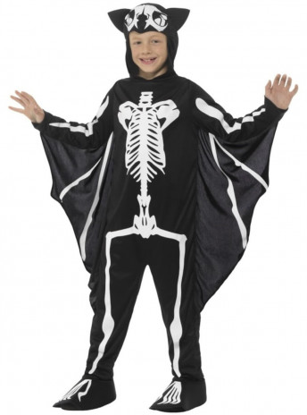 Fato de esqueleto morcego de criança para festejar o halloween ou o carnaval.