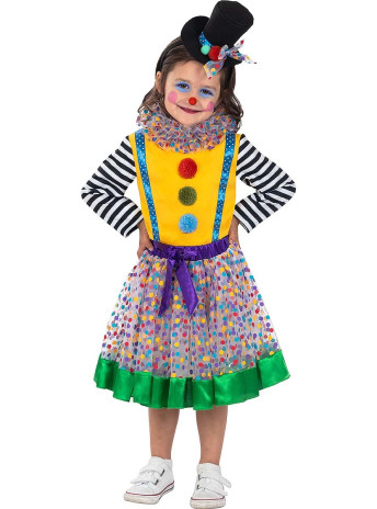 Disfarce deluxe de palhaça para a sua menina se mascarar.