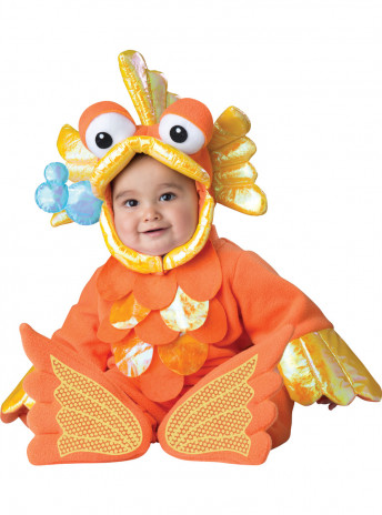 Fato de Carnaval de peixe para bebé. Inclui macacão com capuz e tapa botas.