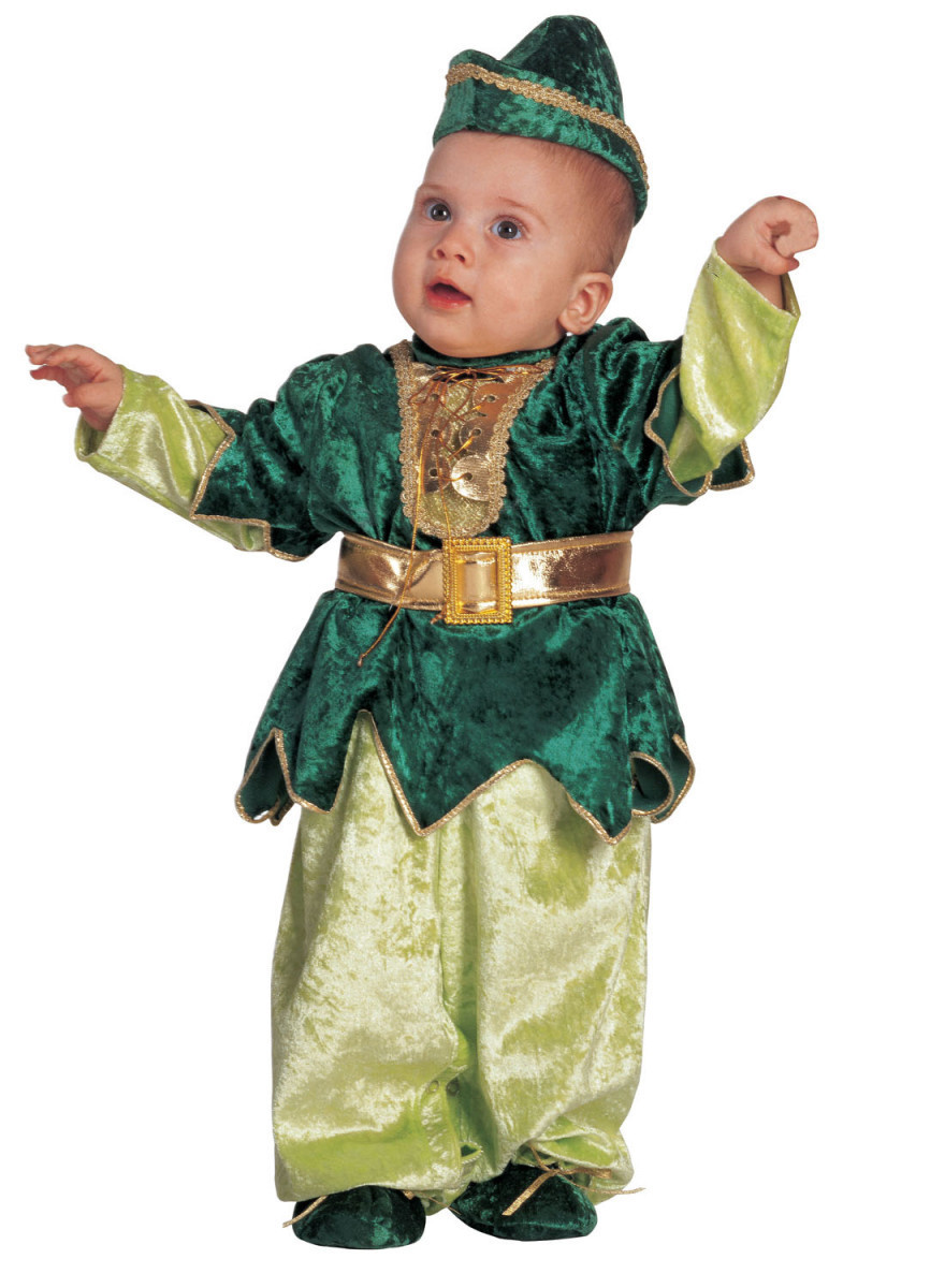 Disfarce de carnaval para menino bebé do Peter Pan ou Robin dos Bosques.