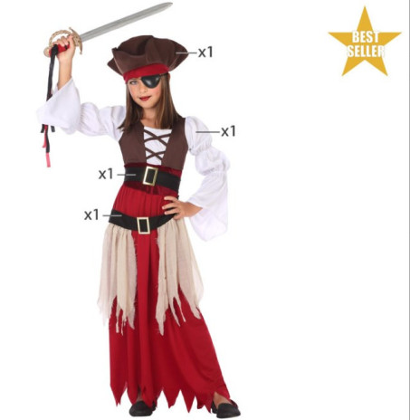 Fato de pirata com saia comprida para menina para brincar ou festejar o carnaval.