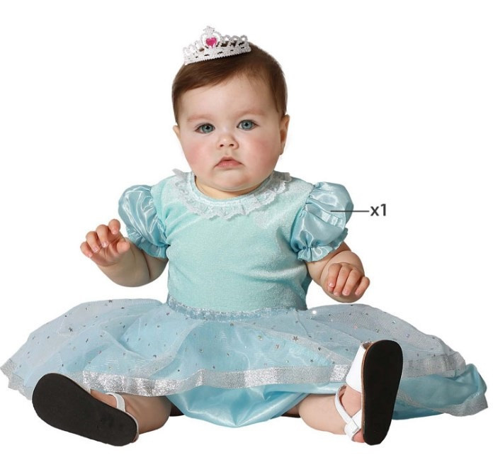 Disfarce de carnaval para menina bebé de princesa na cor azul. Como a Cinderela das Princesas da Disney.