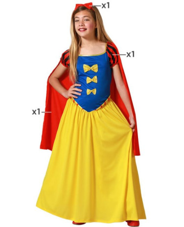 Fato de princesa para menina para brincar ou festejar o carnaval, inspirado na Branca de Neve das Princesas da Disney.