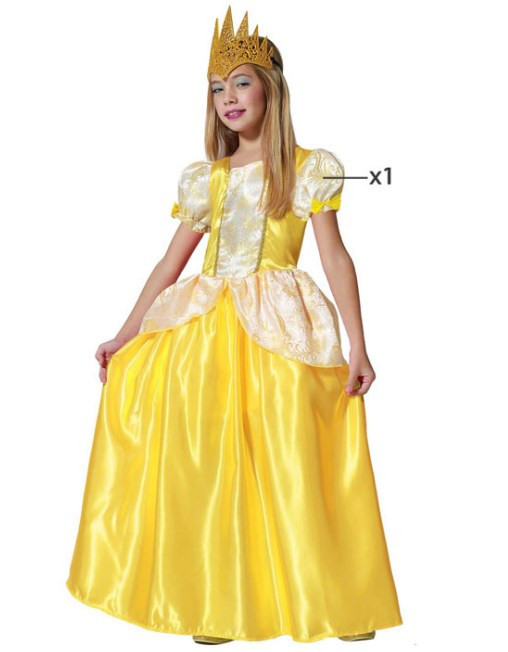 Fato de princesa em dourado/amarelo para menina para brincar ou festejar o carnaval, inspirado na Bela das Princesas da Disney.