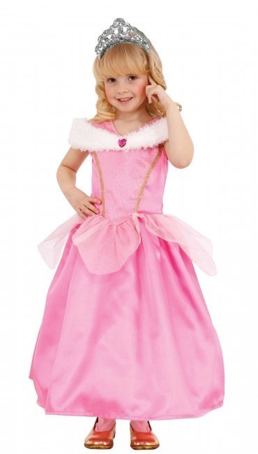 Fato de princesa em cor de rosa para menina para brincar ou festejar o carnaval, inspirado na Bela Adormecida das Princesas da Disney.