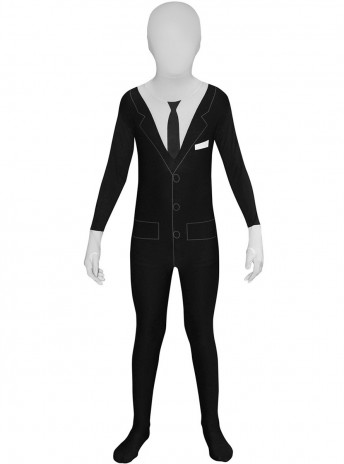 Inclui fato ajustável ao corpo, mascára elástica, smoking preto , com o qual você pode ver, respirar e até mesmo beber .