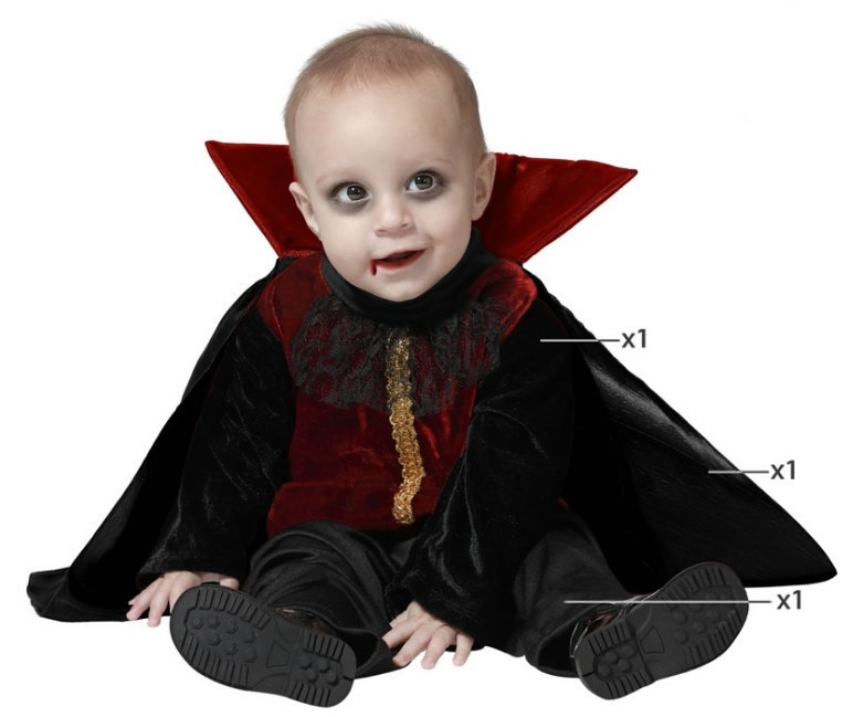 Fato de vampiro negro e vermelho para menino bebé para festejar o halloween ou o carnaval.