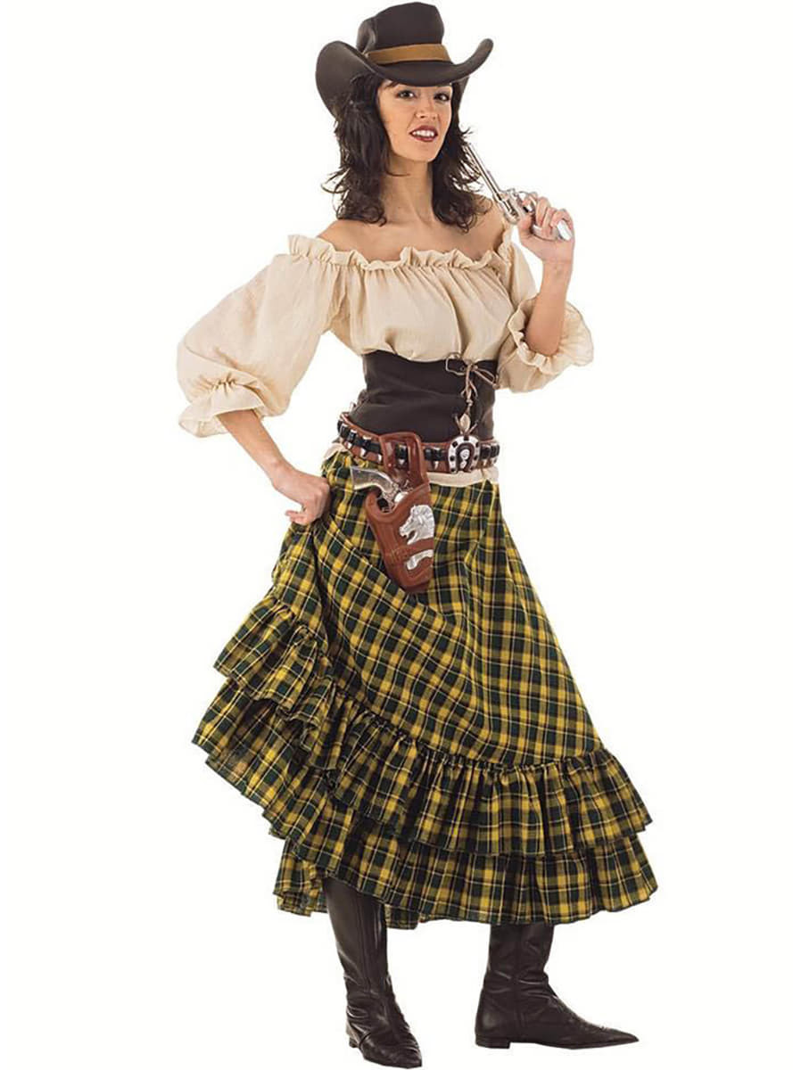 Disfarce de carnaval para mulher de vaqueira bandida.
