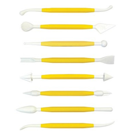 Contém todas as ferramentas necessárias para dominar a arte da decoração de bolos. Formar, contornar, marcar e imprimir flores, folhas, rostos, figuras, etc.
