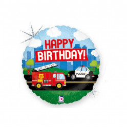 Balão Foil Happy Birthday Veículos de Emergência 46cm