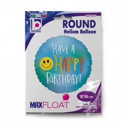 Balão Foil Redondo Happy Birthday Smiley 46cm
