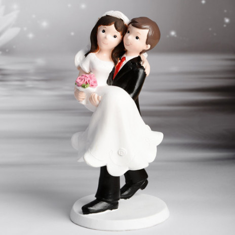 Termine os seus bolos de casamento com esta linda figura de noivos, com a noiva abraçada ao colo do noivo. Recomendamos que coloque a figura em cima de uma folha de pasta de açúcar ou de obréia antes de colocar sobre o bolo.