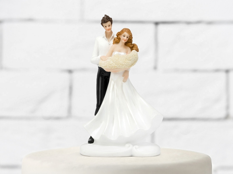 Topper bolo noivos com um bebé nos braços para casamento.Tamanho: 14.5cm