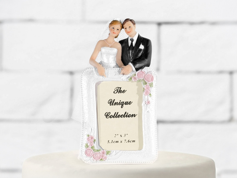 Figura Bolo Casamento Noivos c/Moldura para foto 14cm