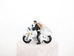 Topper bolo noivos a andar de mota para casamento.Tamanho: 11.5cm