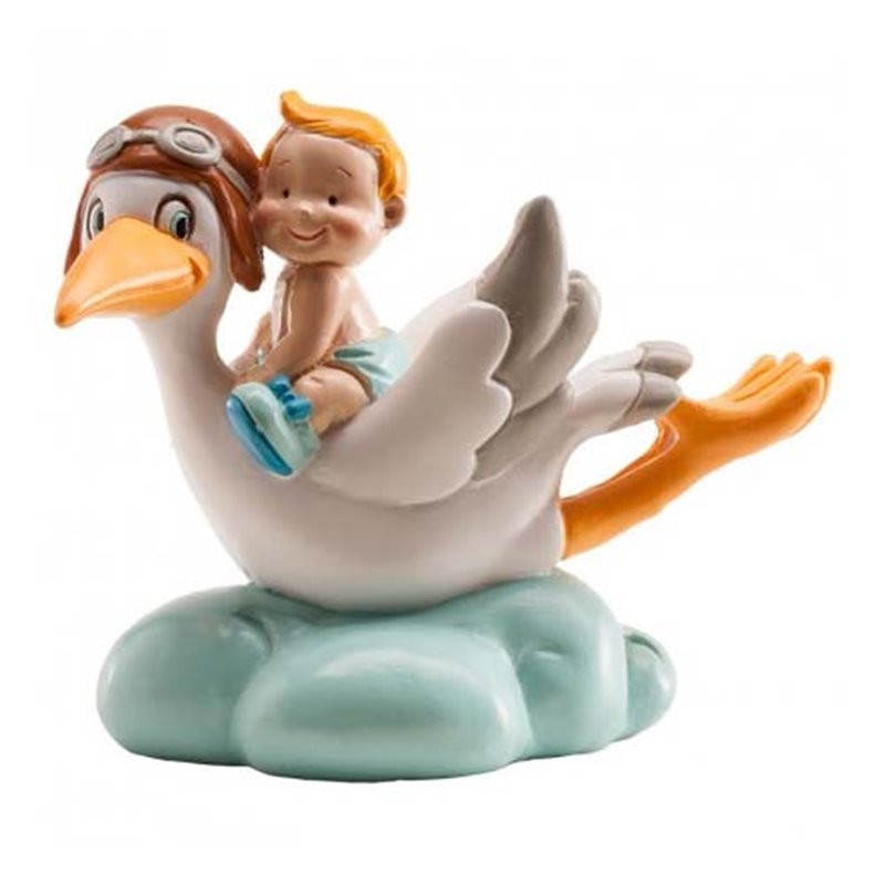 Figura Cegonha Aviadora com Bebé Azul 10cm