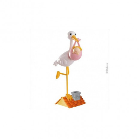 Cegonha com Menina 18cm para decoração de bolos de baptizado