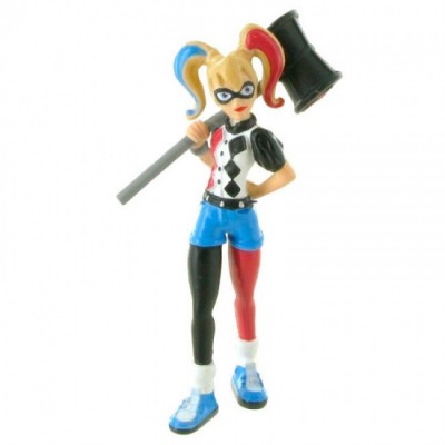 Mini figura de Harley Quin Super Heróis Raparigas DC de tamanho aproximado 8,5cm.