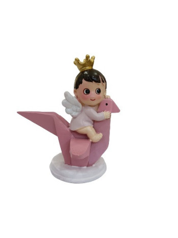 Figura baptizado de menina em pássaro em estilo origami com coroa para bolo para o batismo, chá de bebé ou primeiro aniversário.