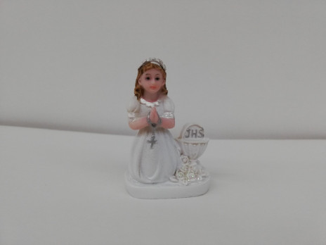 Figura de menina com cálice para bolo da primeira comunhão com cerca de 7cm.