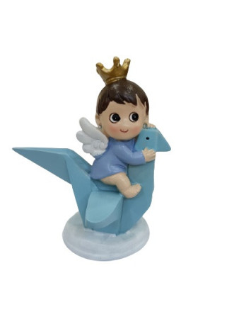 Figura Menino Pássaro Coroa Batizado 10cm