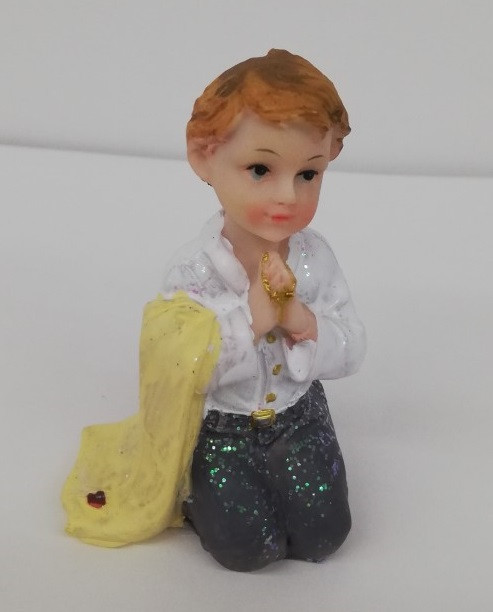 Figura de menino para bolo da primeira comunhão com cerca de 8cm.