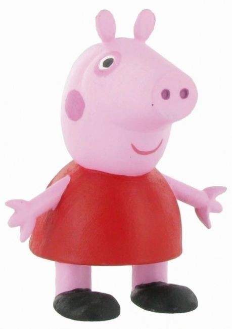 Figura em pvc da Porquinha Peppa com a qual poderás decorar o teu bolo de aniversário ou simplesmente usar para brincadeiras. Dimensões: 5.5cm