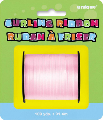 Rolo pequeno de fita acetinada para balões na cor rosa bebé.