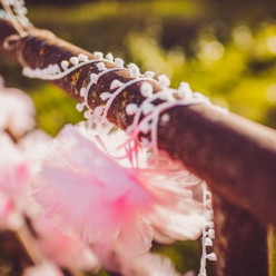 Fita para decoração de festas e/ou eventos com pompons em rosa claro. Ideal para decoração de baby shower e caça sonhos.