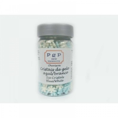 Frasco de 50 gr contendo Flocos de Neve comestíveis em Azul/Branco.